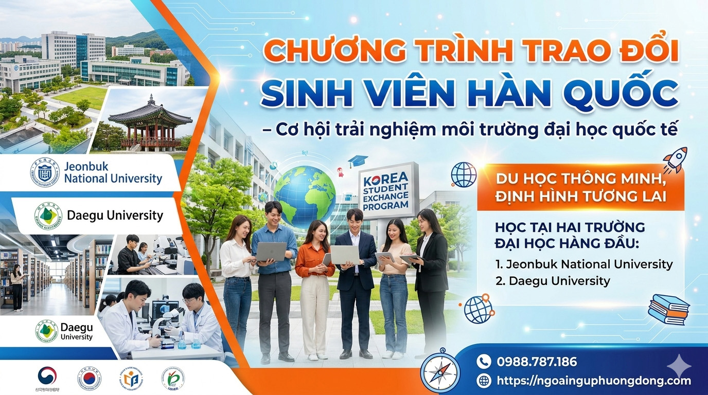 👉 Tin tốt: Bạn hoàn toàn có thể chuyển tiếp sang học tập tại Hàn Quốc thông qua chương trình trao đổi sinh viên giữa Daegu University và Jeonbuk National University – với cơ hội học bổng lên đến 100% học phí.